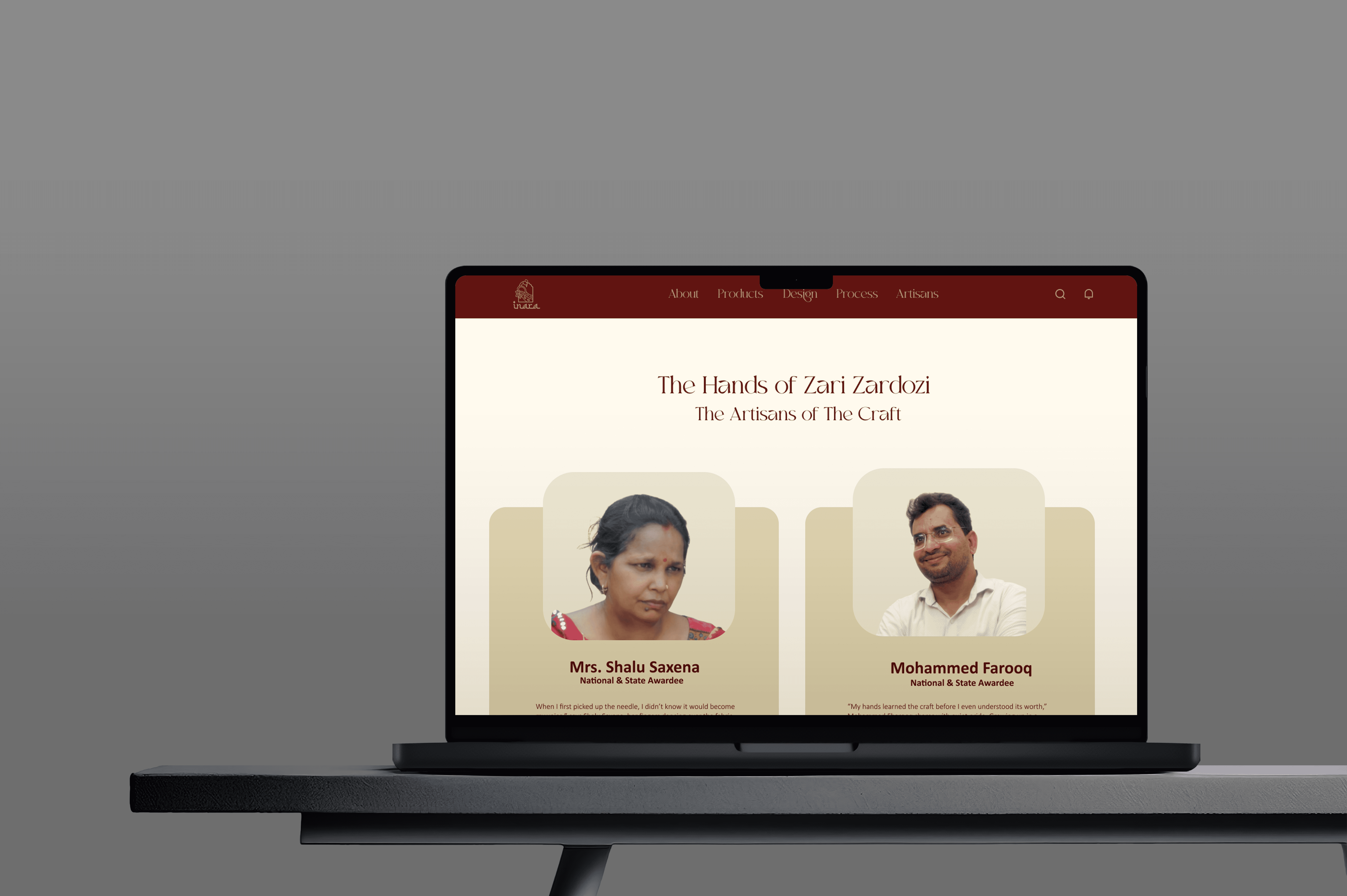 The main challenge was to organize an extensive educational catalog of a niche craft without creating "confusing clutter". Traditional crafts like Zardozi involve complex techniques and histories; the goal was to use brainstorming and mind mapping to simplify the educational journey while maintaining the premium, respectful feel of the brand.