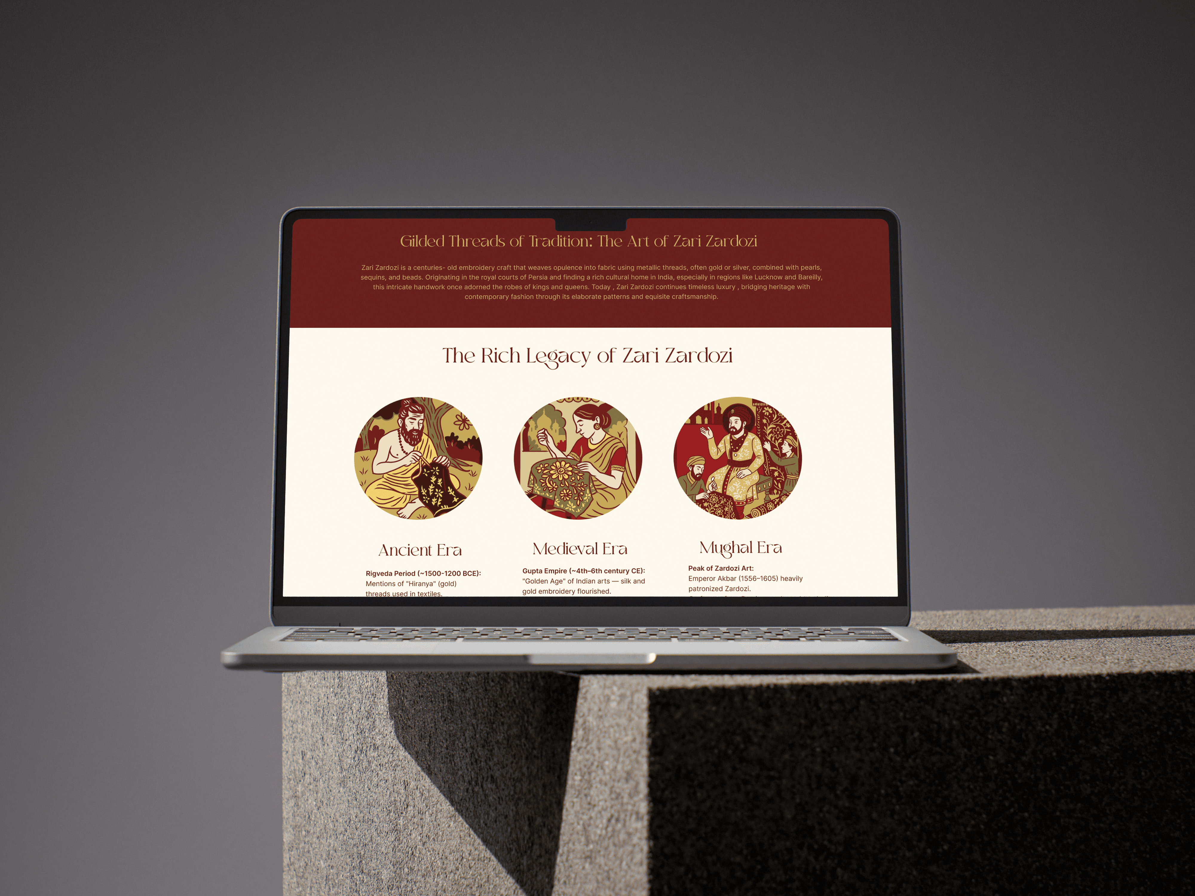 Design System: Developed a cohesive typography and color system that reflects the richness of Zari-Zardozi while ensuring long-form educational text remains highly readable.